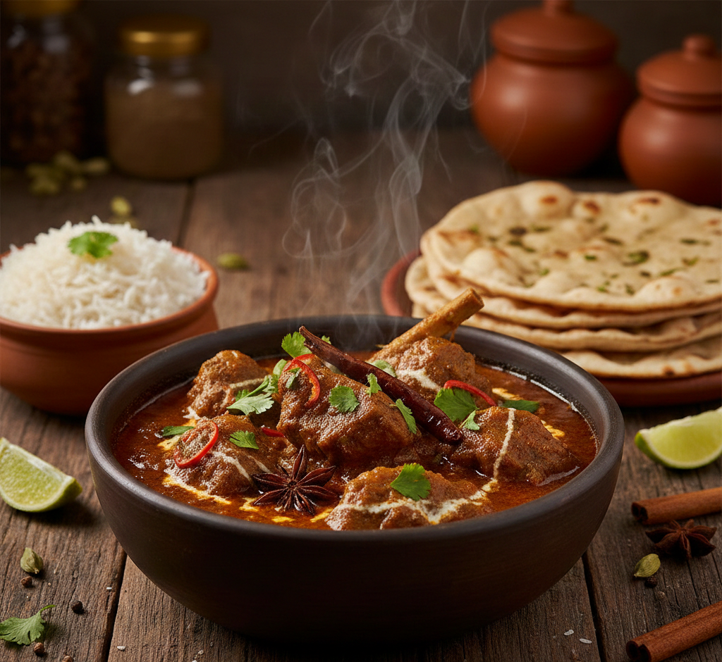 Classic mutton curry in rich spiced gravy.